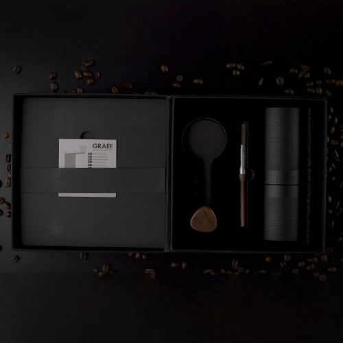 Stilīgie GRAEF ar rokām gatavotās kafijas produkti – eleganti matēti melnā krāsā ar izteiksmīgiem īsta akācijas koka akcentiem. Tie ir paredzēti dizaina entuziastiem, kā arī ikvienam, kurš savā virtuvē vēlas skaistus, augstas kvalitātes un ilgmūžīgus produktus. Izbaudiet kafijas pauzi ar GRAEF Handmade Coffee Collection mājās, kempingā vai ceļojumā.