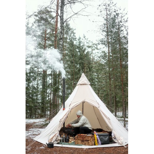 Pusapaļais korpuss nodrošina efektīvu siltuma izkliedi, ļaujot telti uzsildīt īsā laikā.