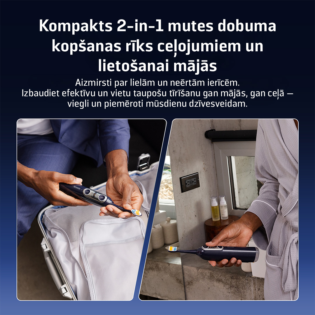 Apvieno sonisko zobu suku un ūdens floseri vienā ierīcē, samazinot kopšanas laiku uz pusi.