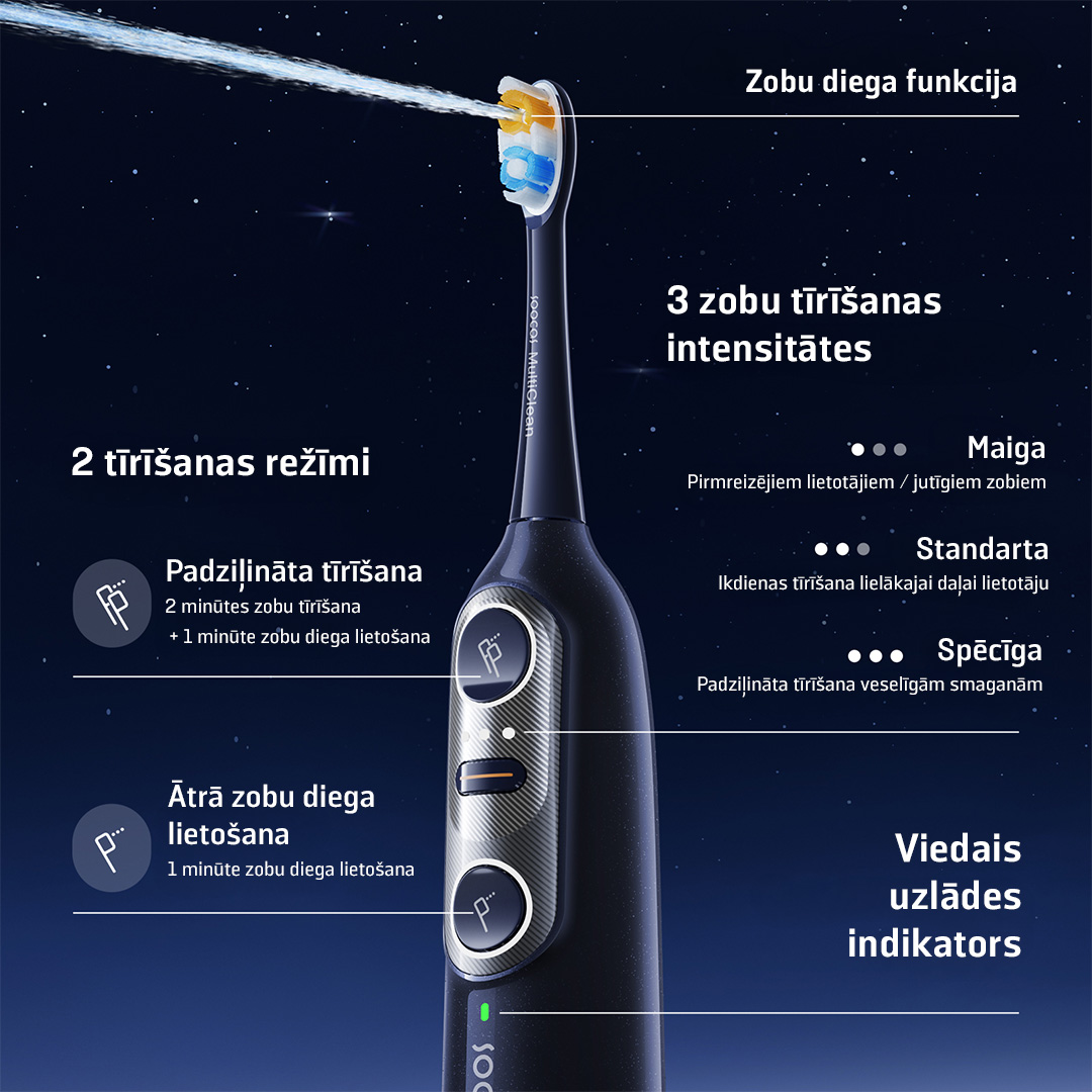 Soocas NEOS II pārdefinē mutes higiēnu ar revolucionāro Multiclean konceptu — pasaulē pirmo 2-vienā zobu suka ar diegošanas funkciju. Šī ierīce apvieno zobu tīrīšanu un ūdens diegošanu vienā ērtā ierīcē, padarot ikdienas mutes kopšanu vienkāršāku, efektīvāku un modernāku.