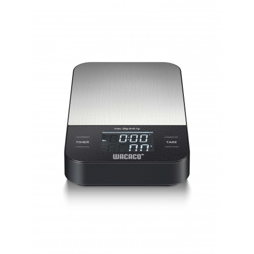 Iebūvētais taimeris ir būtisks instruments pour-over kafijas pagatavošanā, ļaujot kontrolēt ūdens liešanas laiku. Tare funkcija ļauj ātri aprēķināt tīro sastāvdaļu svaru, automātiski atņemot trauka vai bļodas svaru.